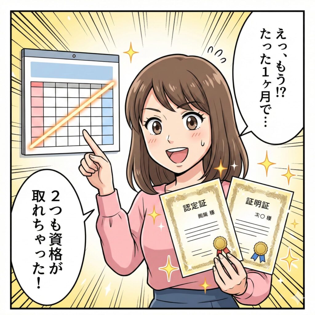 毎日1時間の学習で、宣言通り2ヶ月でW資格を取得。